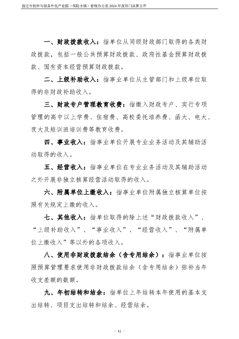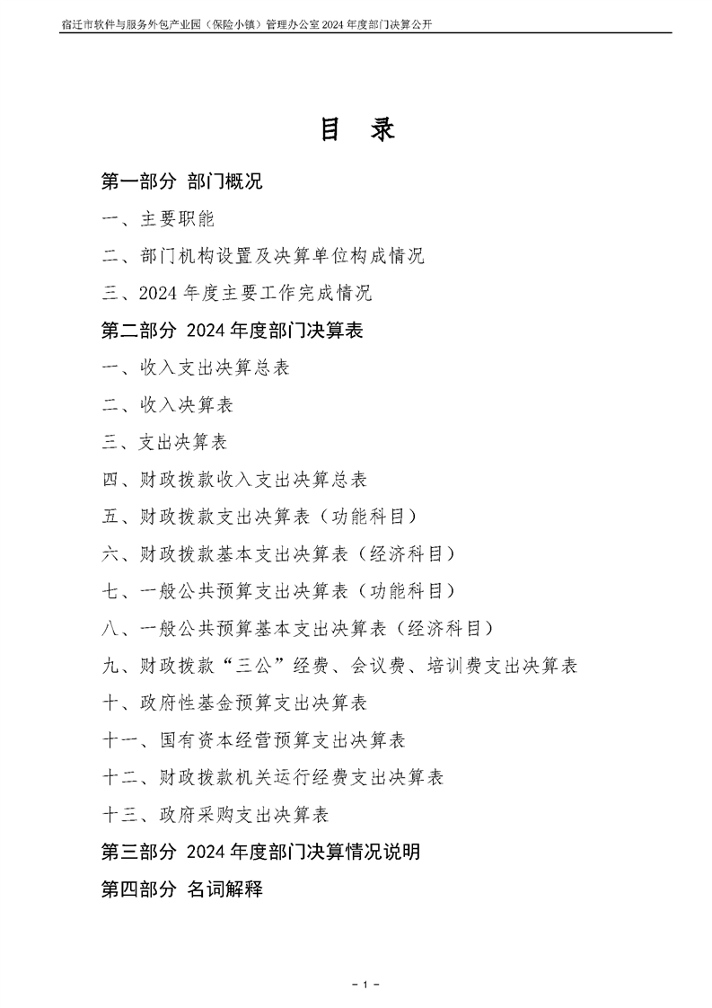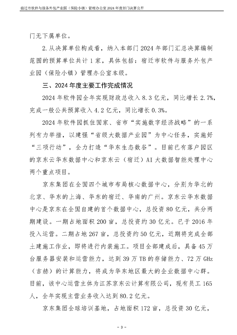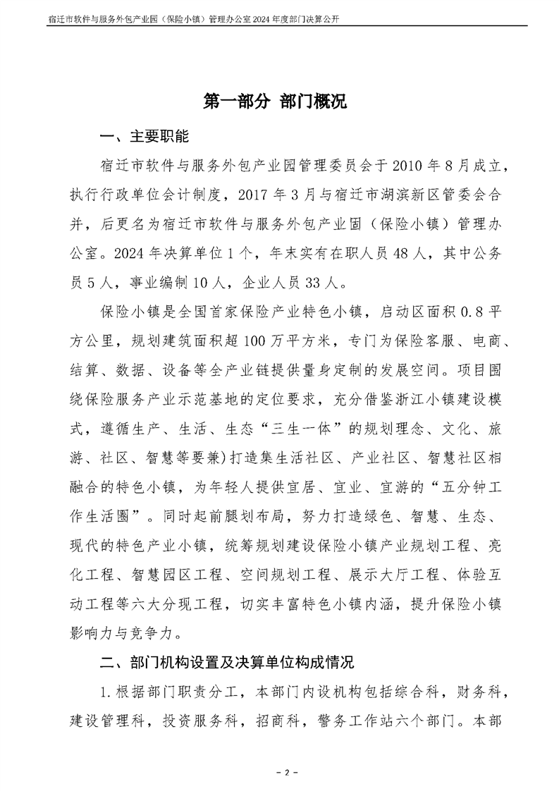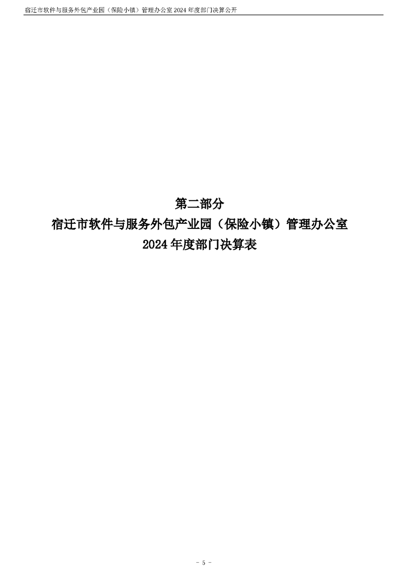 2024年度宿迁市软件与服务外包产业园(保险小镇)管理办公室部门决算公开