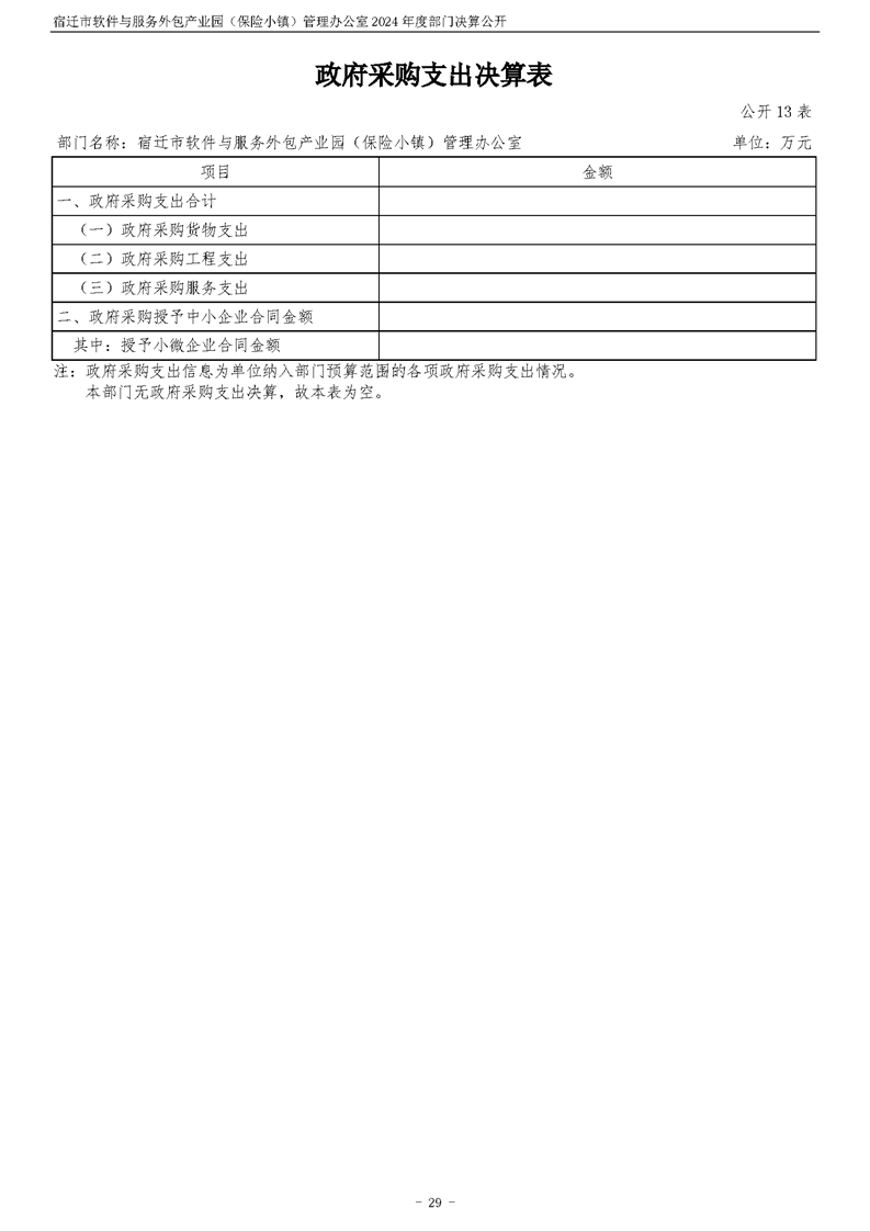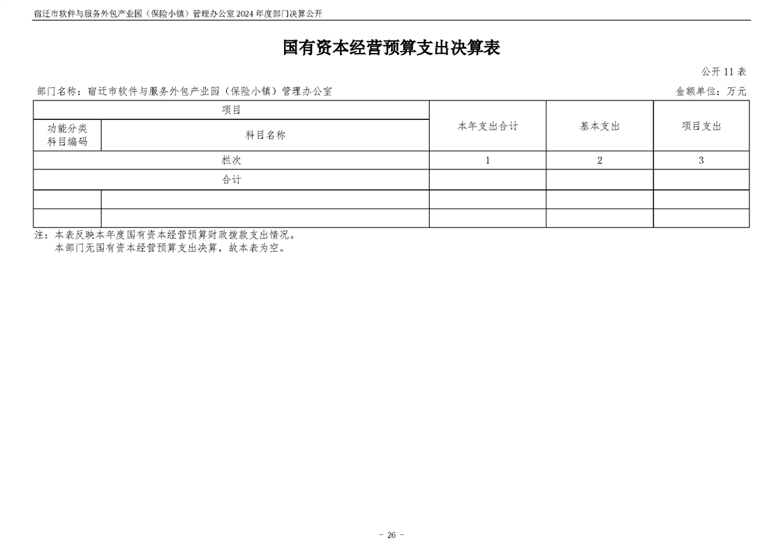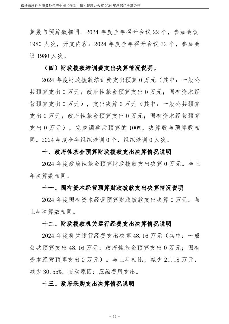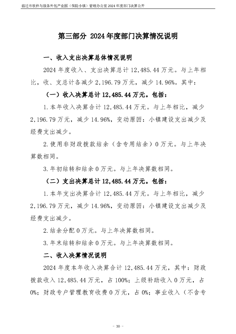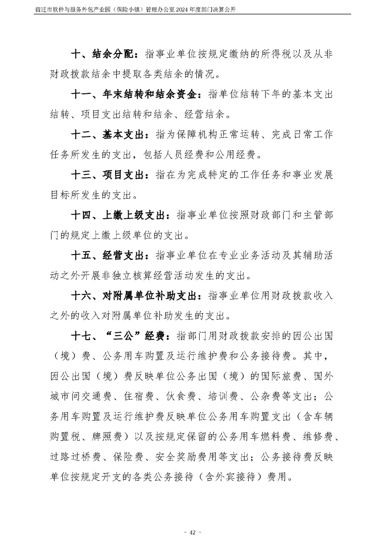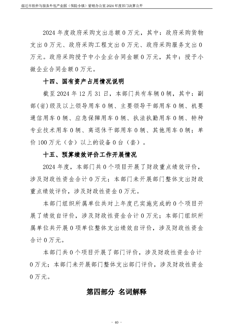 2024年度宿迁市软件与服务外包产业园(保险小镇)管理办公室部门决算公开