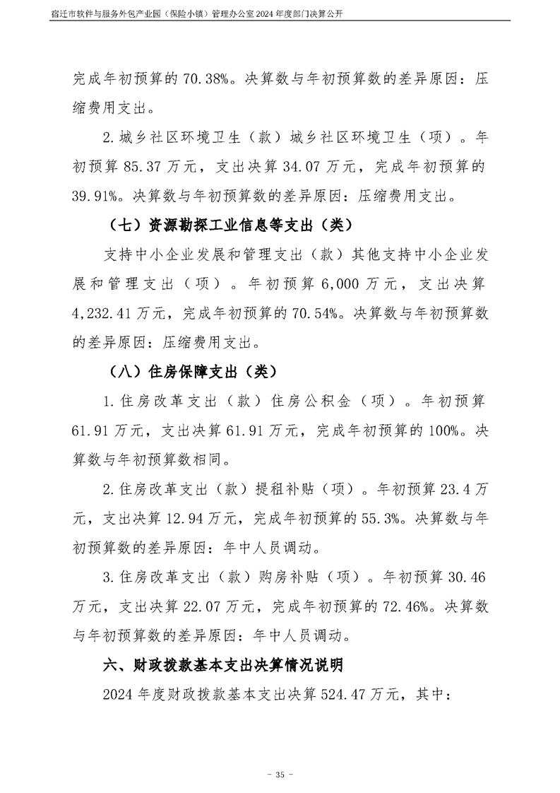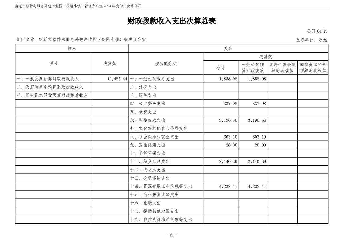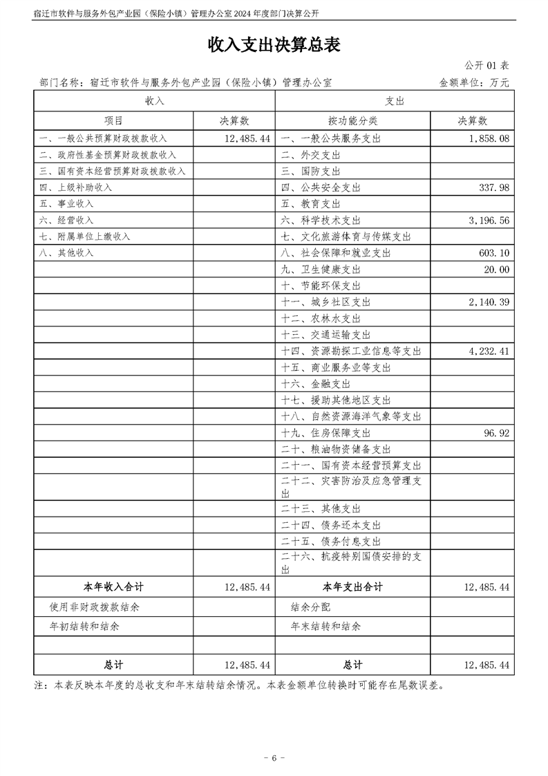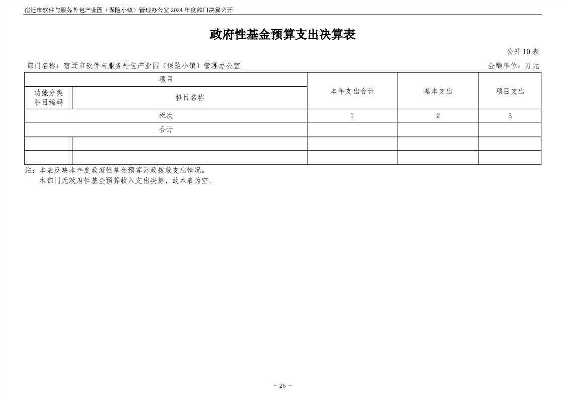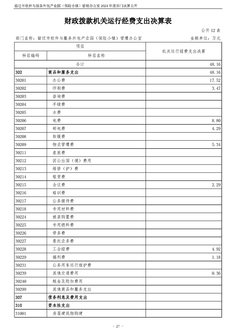 2024年度宿迁市软件与服务外包产业园(保险小镇)管理办公室部门决算公开