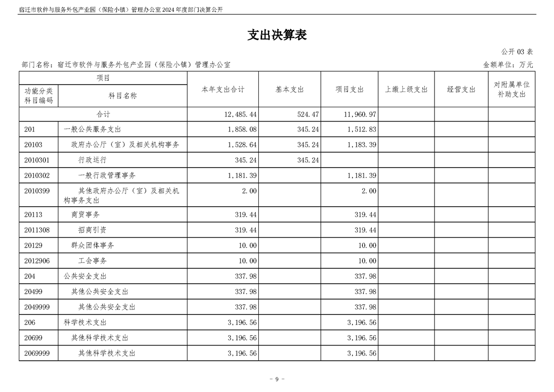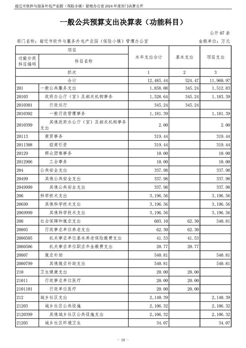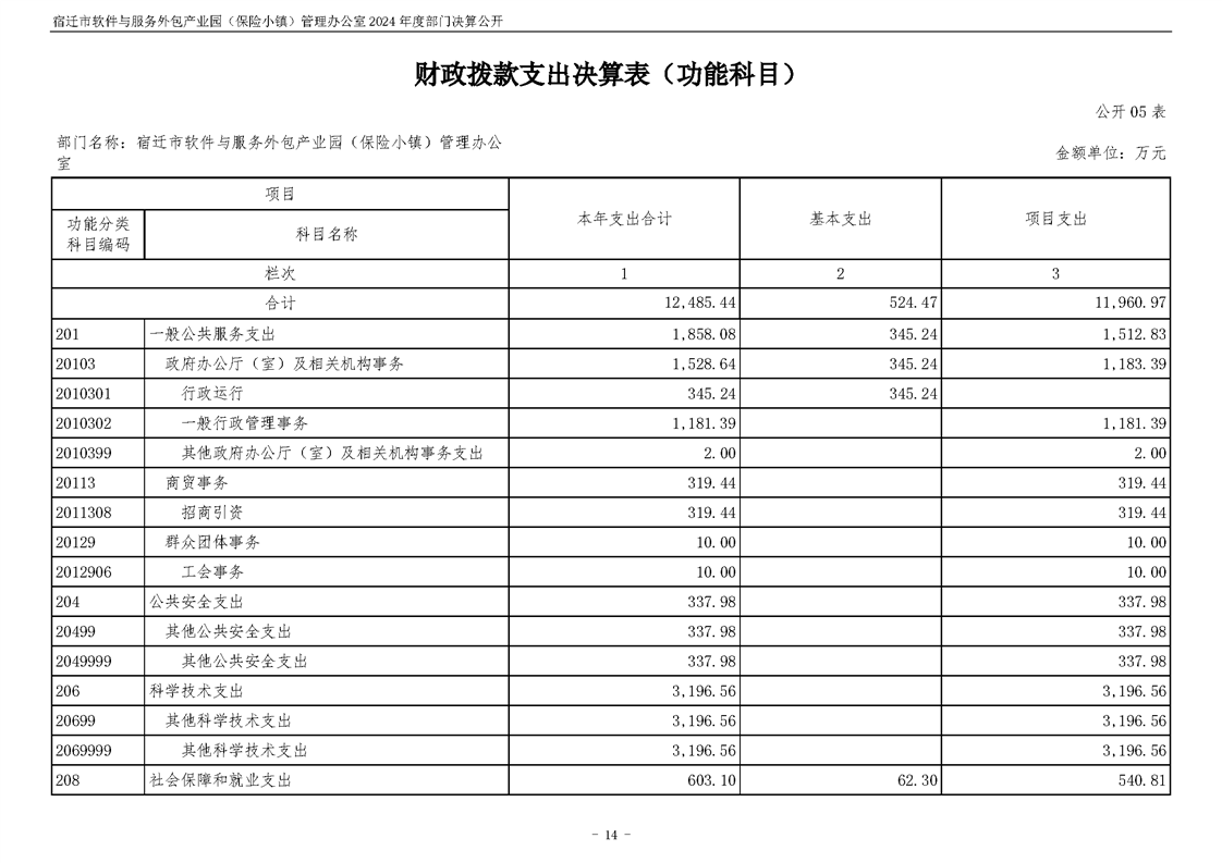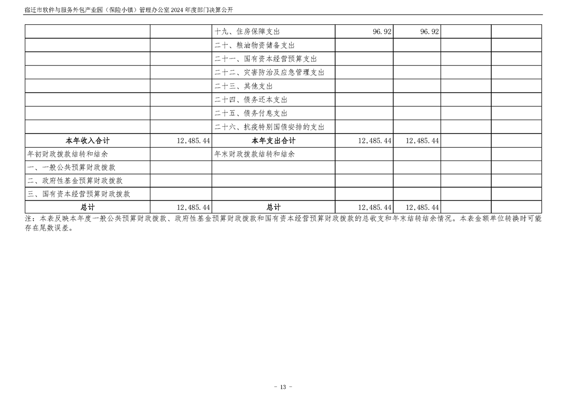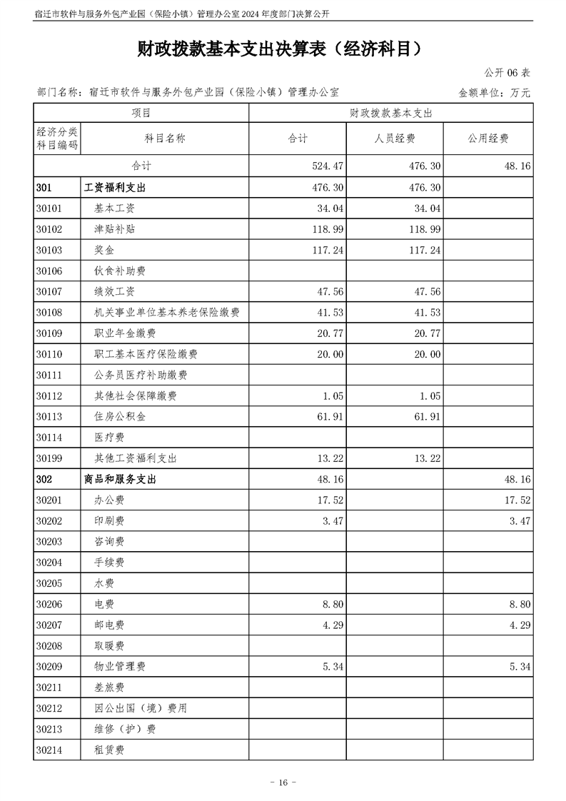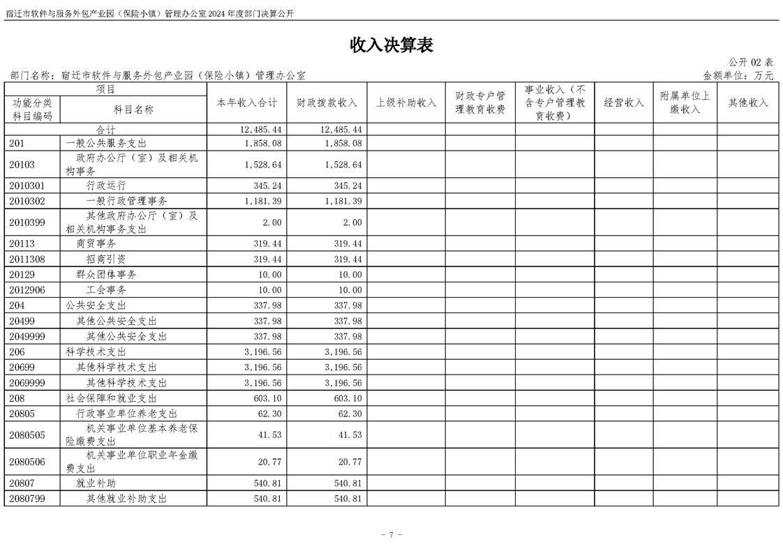 2024年度宿迁市软件与服务外包产业园(保险小镇)管理办公室部门决算公开