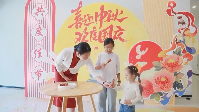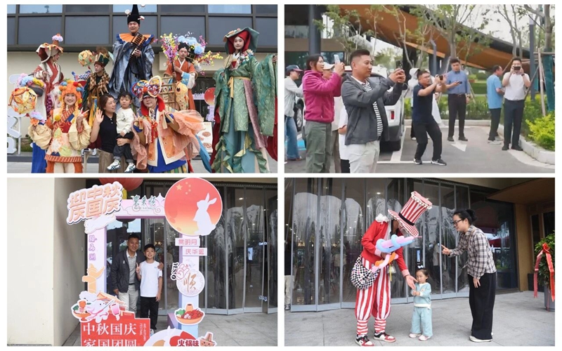 丁先生正带孩子在餐饮中心门口的国风“打卡墙”前拍合影。“孩子特别喜欢高跷表演,还领到了免费的糖葫芦,在‘打卡墙’后拍了照,感觉特别有节日气氛。”丁先生笑着说,“待会儿我们选择在东来顺用餐,尝一尝正宗的老北京涮羊肉。”