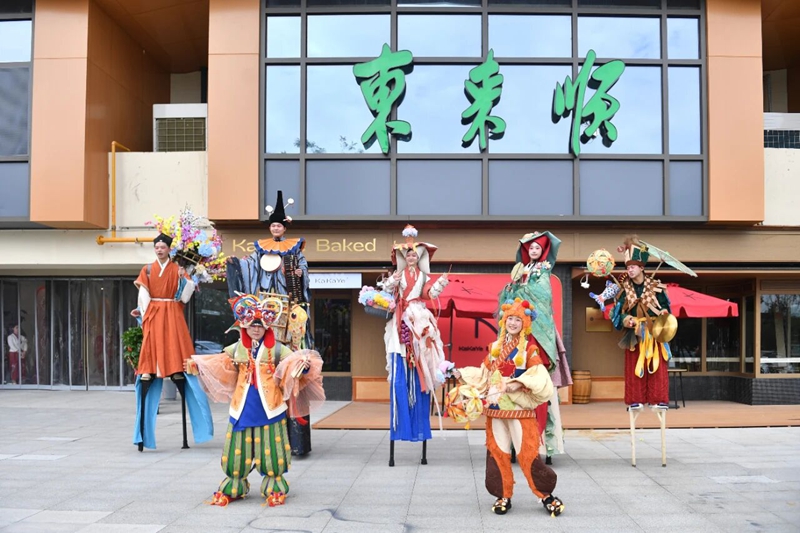 据湖畔渔歌餐饮中心相关负责人介绍,本次特别邀请上海戏剧巡游团队打造的《市郎图》,其作品背景源于国宝级画作《清明上河图》,剧目融合了戏剧、舞蹈与非遗高跷技艺等多种元素,展现了盛世之下百姓安居乐业场景。游客们纷纷举起手机拍照,仿佛完成了一场跨越时空的文化对话。