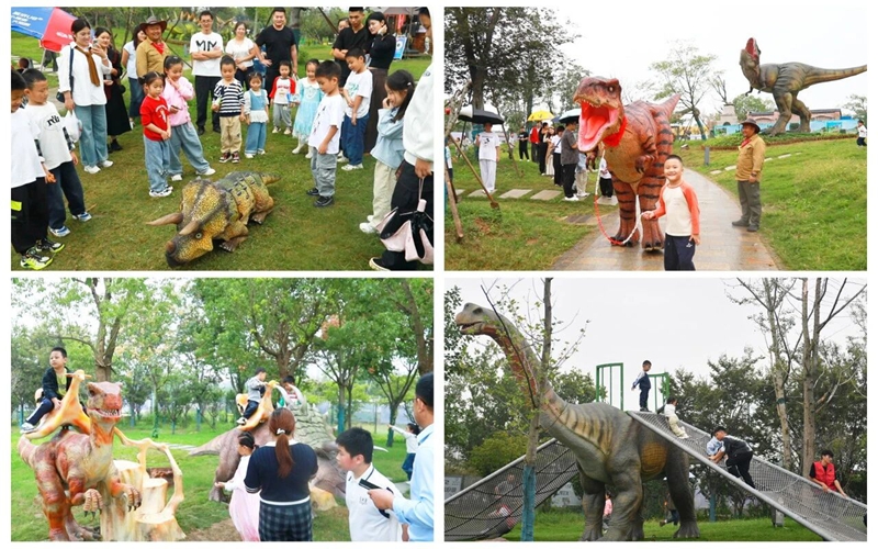 在科普与趣味融合方面,沐晨太空舱轻奢度假营地推出的宿迁恐龙科普园,以其独特的科普性与趣味性成为亲子家庭的热门“打卡点”,园内40多只造型各异的恐龙还原了侏罗纪世界的远古氛围,让孩子们在游玩中学习知识。