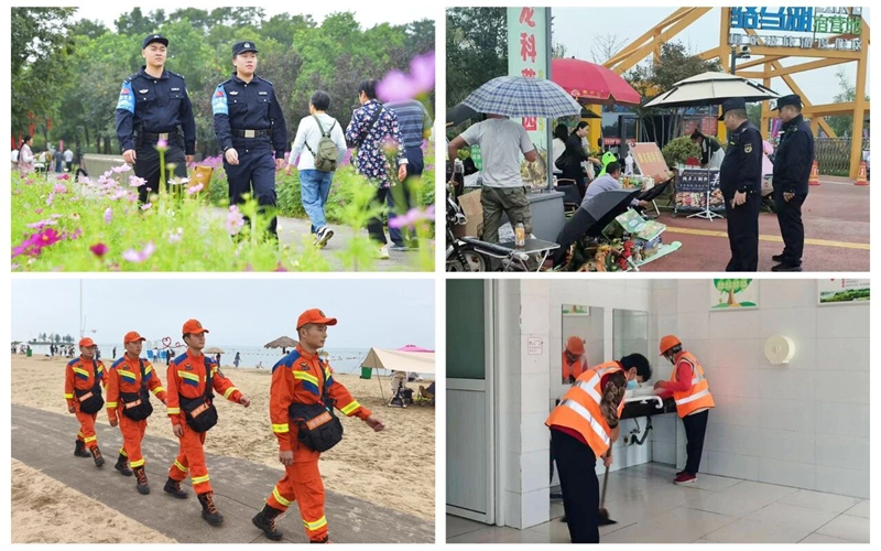 在安全保障上,区公安部门增派警力,在重点景区、交通枢纽等地加强巡逻值守,疏导人流车流,快速处理各类警情和求助,有效维护了社会面治安秩序平稳;城管队员保持全天候在岗,规范景区周边经营秩序,维护市容环境整洁,并及时为游客提供咨询、引导等便民服务;消防大队则在节前针对人员密集场所进行了重点消防安全检查,在节日期间安排人员现场值守,为各项活动提供坚实消防安全保障。